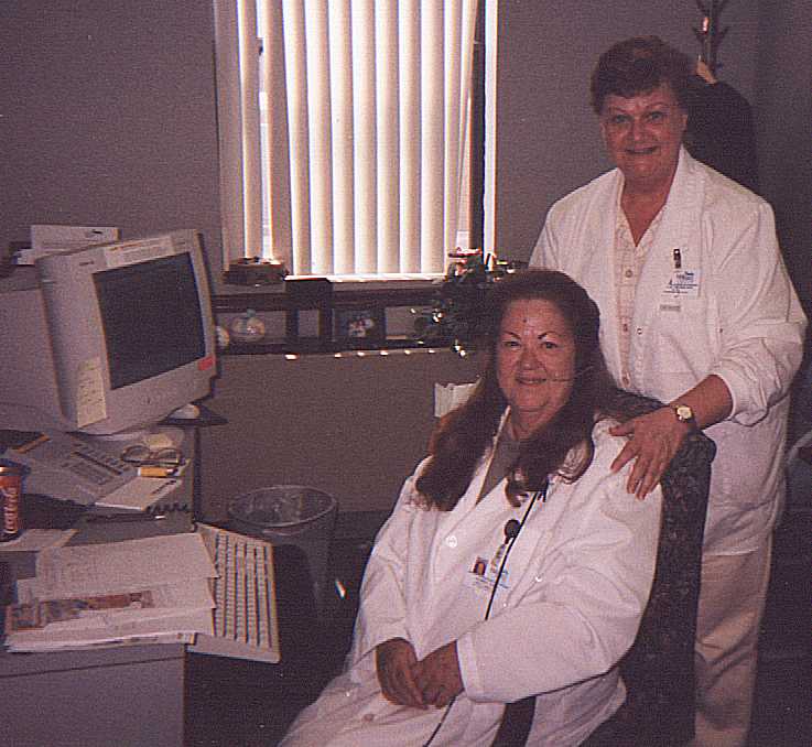 Nicholson, RN (left) and assistant Audrey Wren flank popular medical